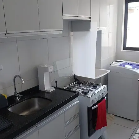 Das Apartment Melhor 01 Quarto De Boa Viagem verfügt auch über eine voll ausgestattete Küche, ausgesttatet mit Geräten für die Zubereitung eigener Mahlzeiten. Das Apartment ist in circa 10 Gehminuten Entfernung von der Bushaltestelle Transporte Complementar.